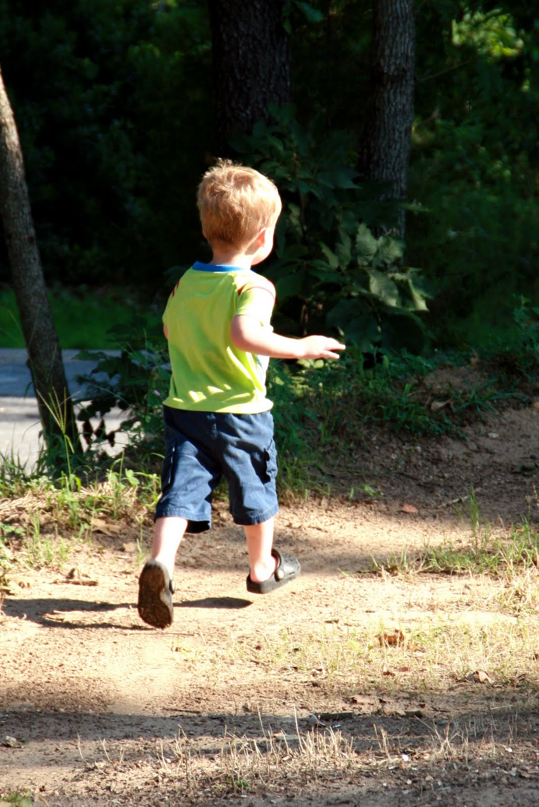 "Watch, Mommy!" exclaims Matthew. "Me run fast, too!"