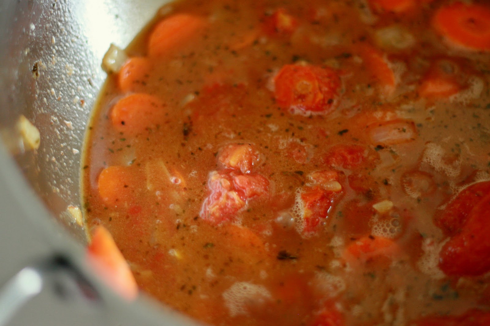 When making anything that requires a lengthy simmering time, I cut veggies into larger pieces to ensure they don't turn to complete mush after cooking for several hours.